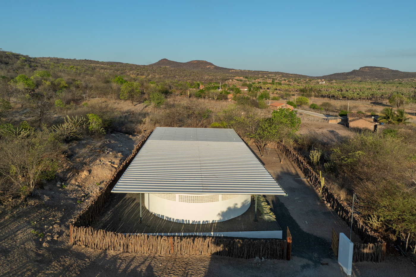 Casa da Carnaúba has two circular, interdependent environments (the Drying House and the Straw Beating and Storage House), interconnected by a pantry structure, bathroom and dust storage space. Seen from above, the space that aims to cultivate the tradition of women's collective work reveals the shape of a womb, a kind of architectural metaphor that reinforces the feminine power of creation.