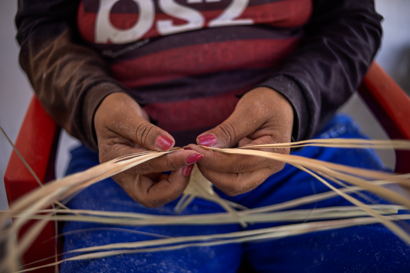 In addition to kinship, the community's residents also share ancestral knowledge: the “weave”, the name given to the braid made with carnauba straw. “We didn’t arrive by understanding the community as a productive unit”, says Rosenbaum. “We got there and asked: what did your grandmother do?” In the home of people like Dona Francisca, a centuries-old basket – or “boió”, as they call it there – braided by her grandmother, used to be hidden from the eyes of visitors.