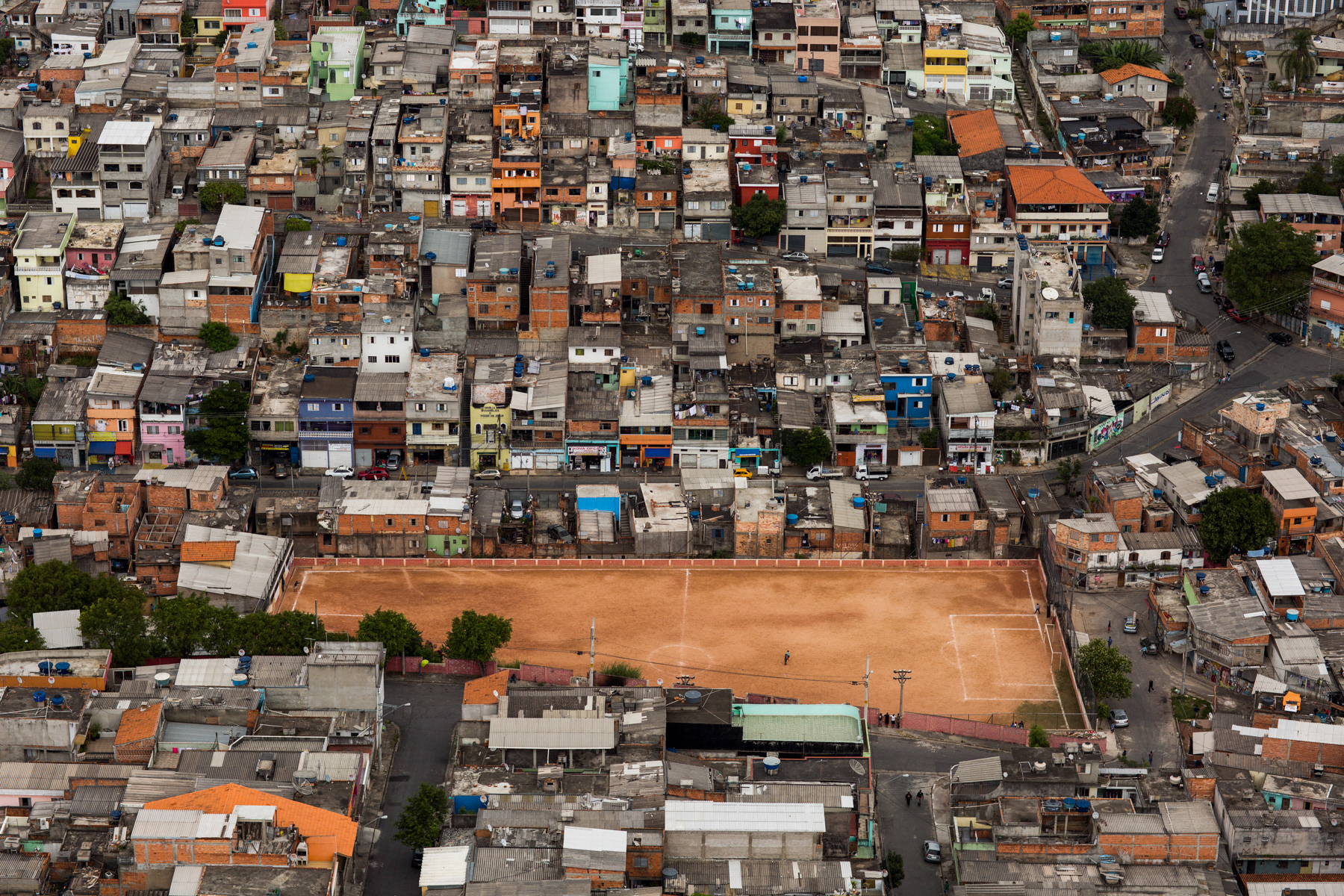 These fields are a solid basis of soccer’s spirit in Brazil, being colored and powerful in face of the greyish scenario of the periphery houses. It’s not hard to find friends, relatives, adults and children cheering together for their local teams.