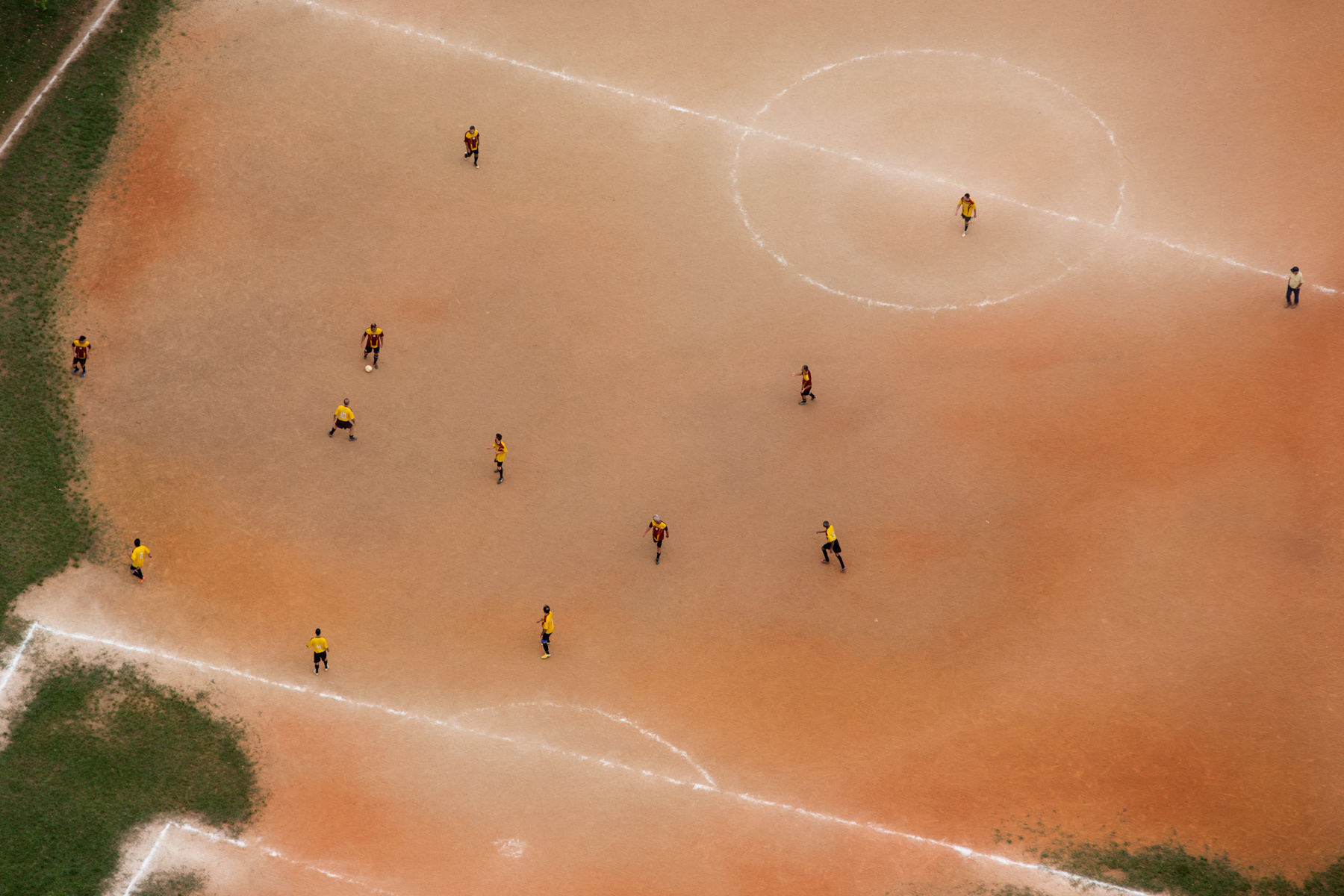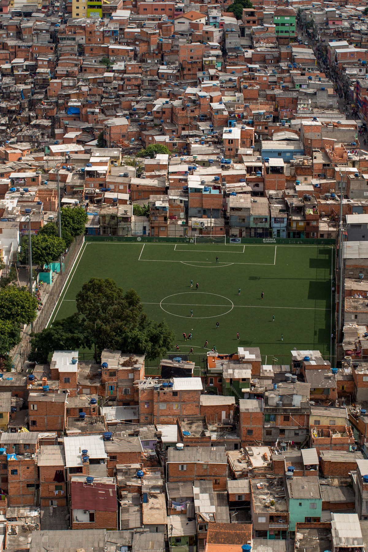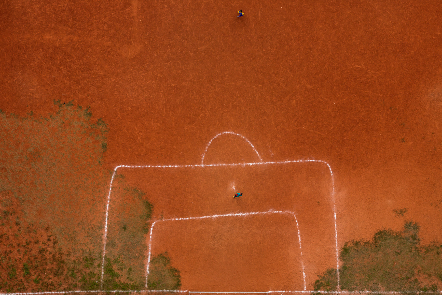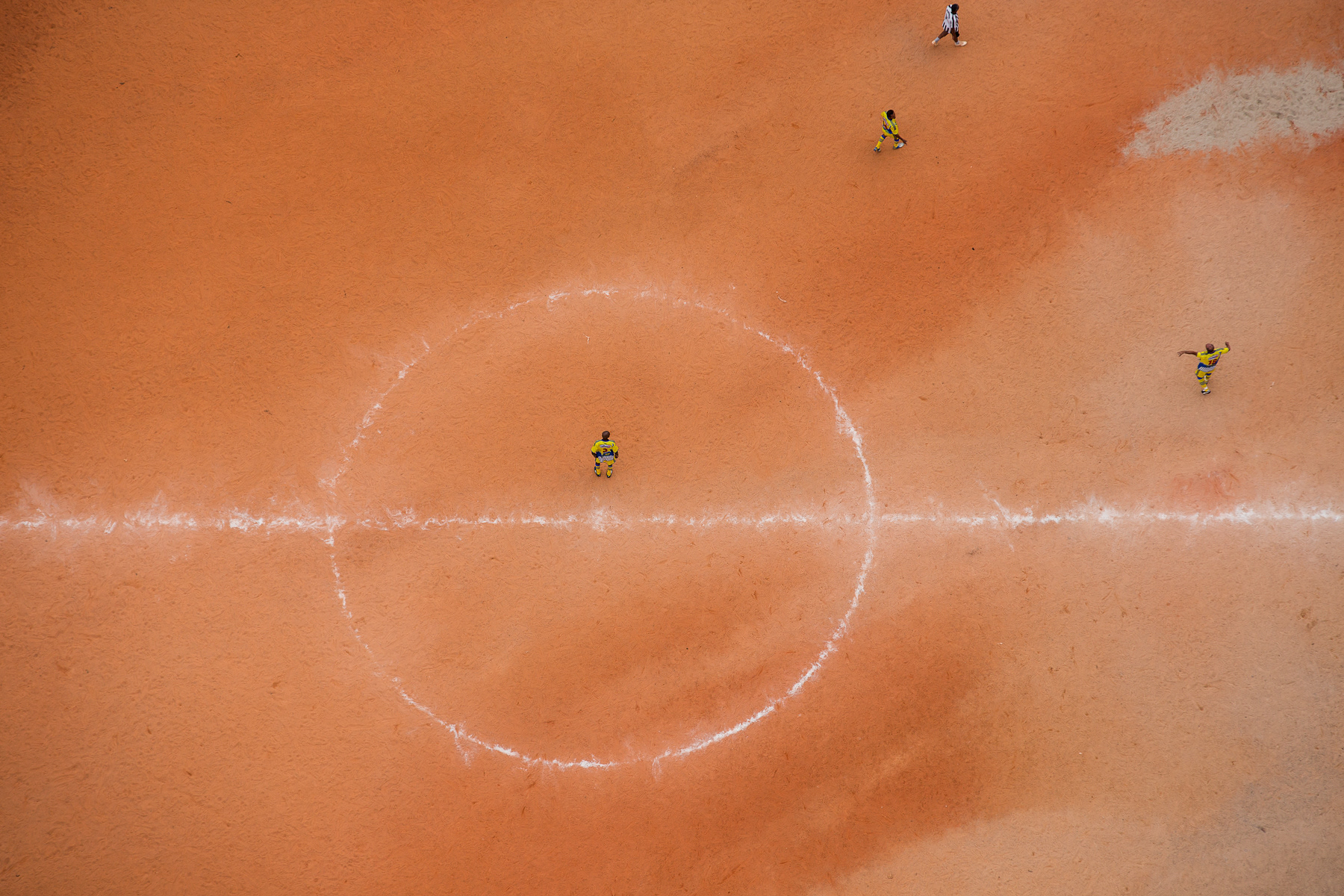 Some of them are owned by local soccer clubs, while others are public spots. Some of them are mainly dirt, while others are made of sand, or even rests of weathered grass. Nevertheless, they are a breath of fresh air for the hard daily lives of those who live in the city outskirts of Sao Paulo. These fields show the urgency for public and communal places to practice sports and to improve community living, a portrait of those who fight for leisure and a better life in a city like Sao Paulo.