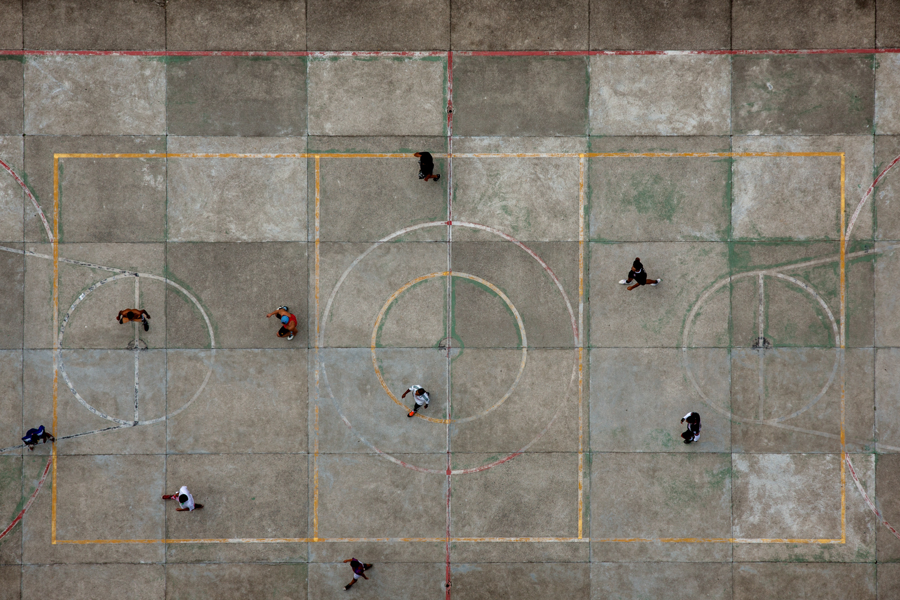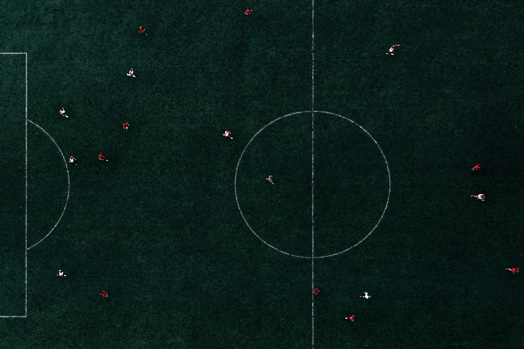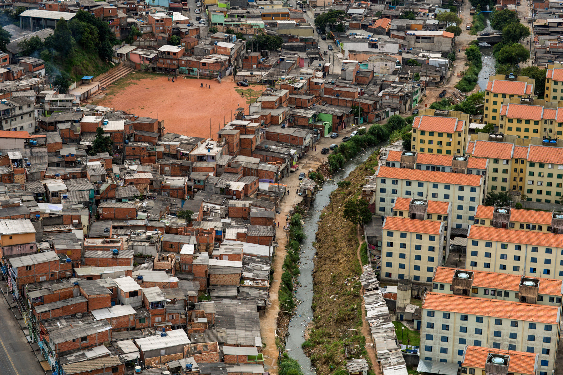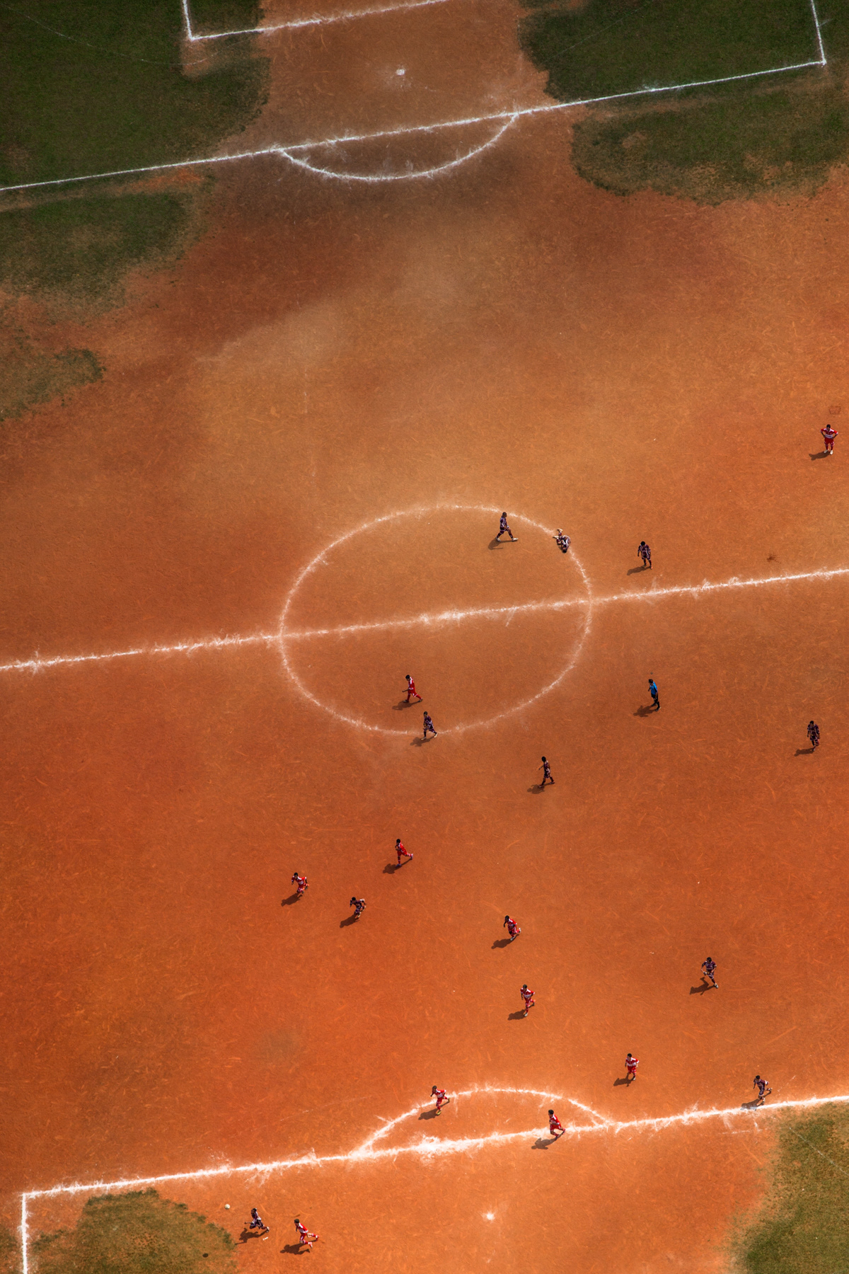 Some of them are owned by local soccer clubs, while others are public spots. Some of them are mainly dirt, while others are made of sand, or even rests of weathered grass. Nevertheless, they are a breath of fresh air for the hard daily lives of those who live in the city outskirts of Sao Paulo. These fields show the urgency for public and communal places to practice sports and to improve community living, a portrait of those who fight for leisure and a better life in a city like Sao Paulo.